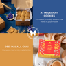 Atta Delight Cookies (300g): Our wholesome and delicious cookies are made with whole wheat flour and cow ghee, subtly sweet and fragrant with brown sugar and cardamom powder. They're a great snack for all, perfect for satisfying your hunger and sweet cravings without compromising on health goals.