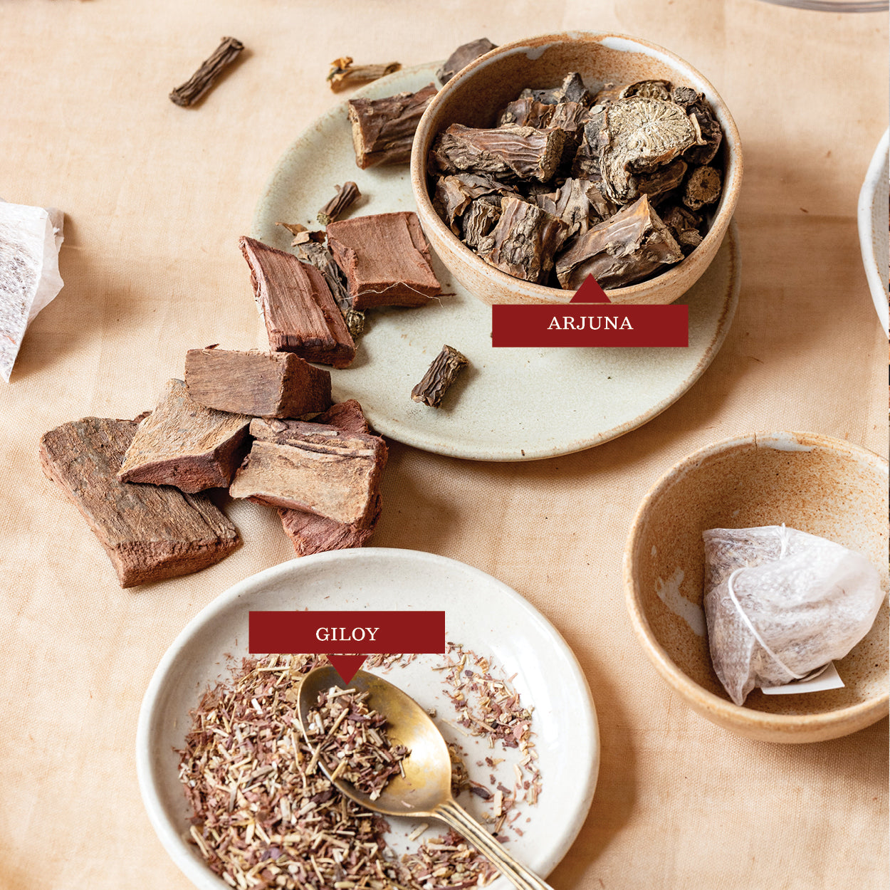 Heart strong infusion tea for the heart is a blend of potent herbs like Guduchi Stem (also known as Moonseed) and Arjuna Bark. Amongst a host of adjuvant health benefits, these herbs are rich in antioxidants, help lower cholesterol level, boost liver health, and support healthy heart functioning.