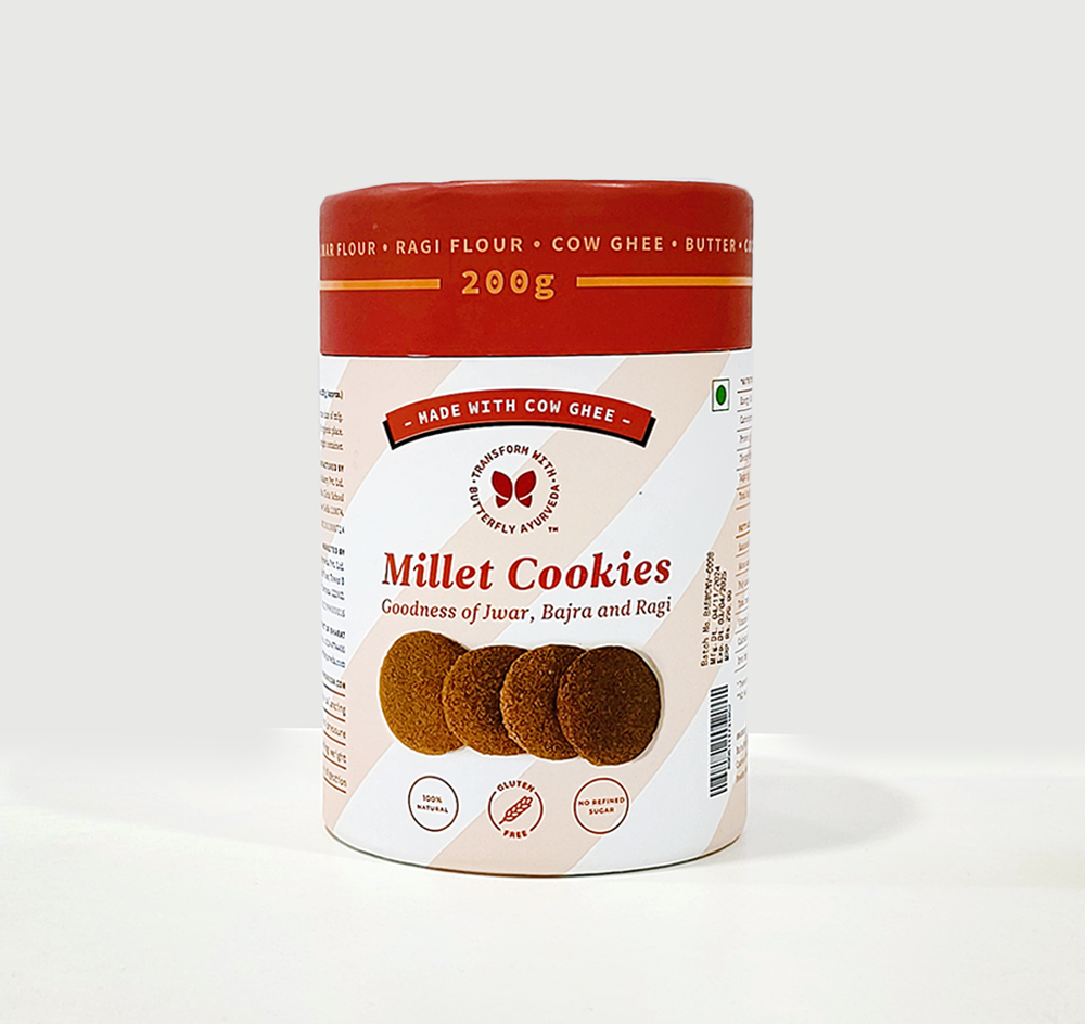 Millets are India’s most ancient crop and carry multiple health benefits including that of being gluten-free. Just the right amount of sweet, a blend of all natural and healthful ingredients, these cookies are sure to steal your heart away.