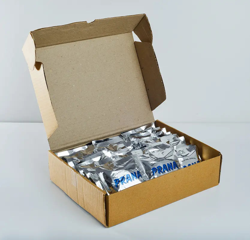 225GM/1KG - Each piece of Prana cookies comes protected inside an airtight aluminum foil, packaged carefully in a stylized cardboard pack.