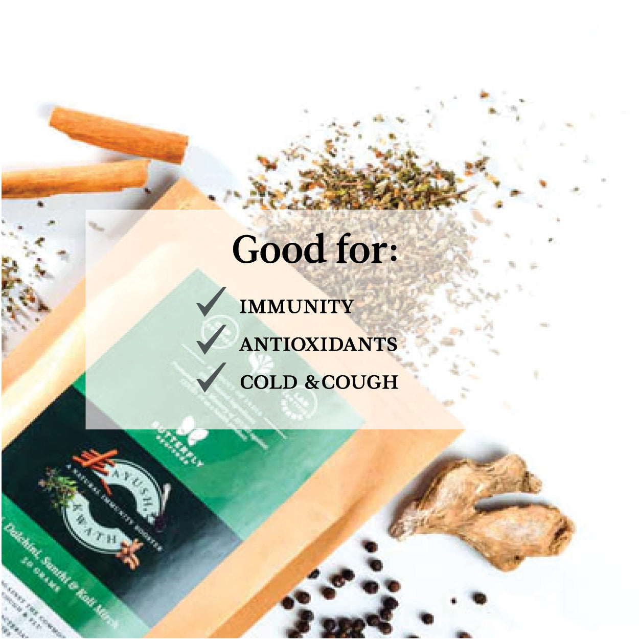 Ayush Kwath is an Ayurvedic immunity enhancing formula created by the Ministry of AYUSH to help boost the body’s immunity against all types of bacterial and viral infections. It is a wellness Kwath that boosts respiratory health, helps with detoxification, and also takes care of the digestive health.