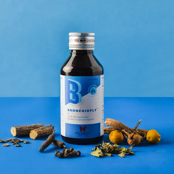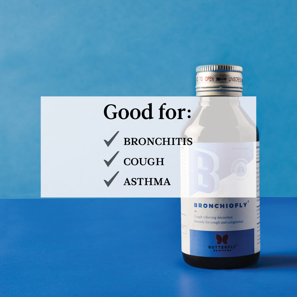 A sugar-free Ayurvedic cough syrup that helps clear the respiratory tracts and protects the lungs and throat against infections. Bronchiofly, the best ayurvedic cough and cold medicine, is made from a blend of potent Ayurvedic herbs and acts as a natural safeguard for the respiratory system..