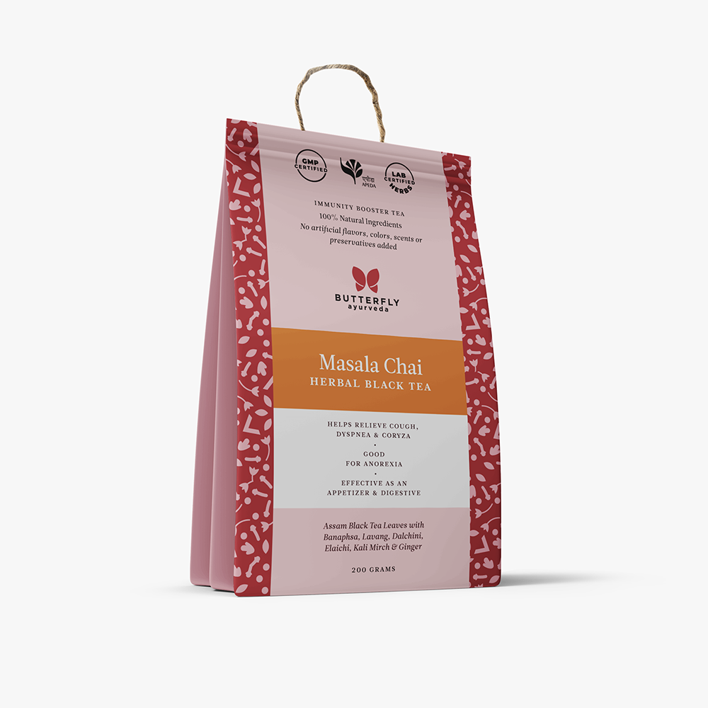 An indo-english brew that tastes strong and smooth and is rich in aroma, makes for a flavourful wholesome cup of tea. A cup of Butterfly Ayurveda's Indian Masala Chai simply leaves you craving for more.
